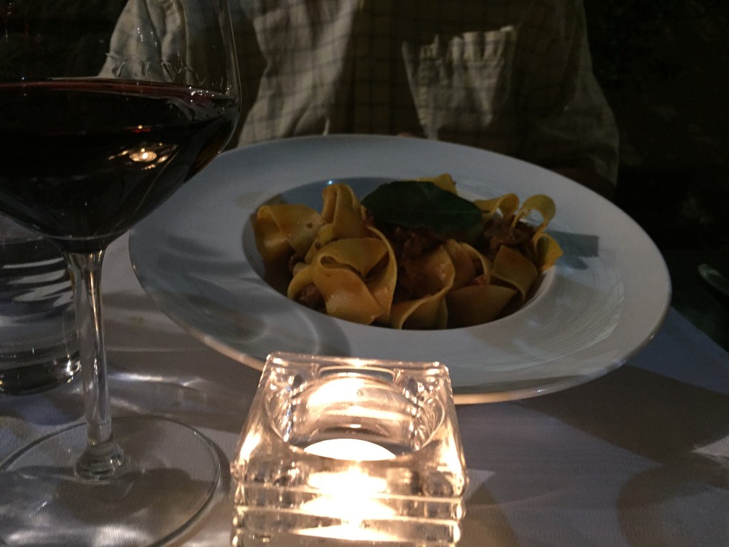 Paul ordered pasta with wild boar sauce, a Tuscan specialty, for dinner tonight. It was pretty good, not wild tasting at all.